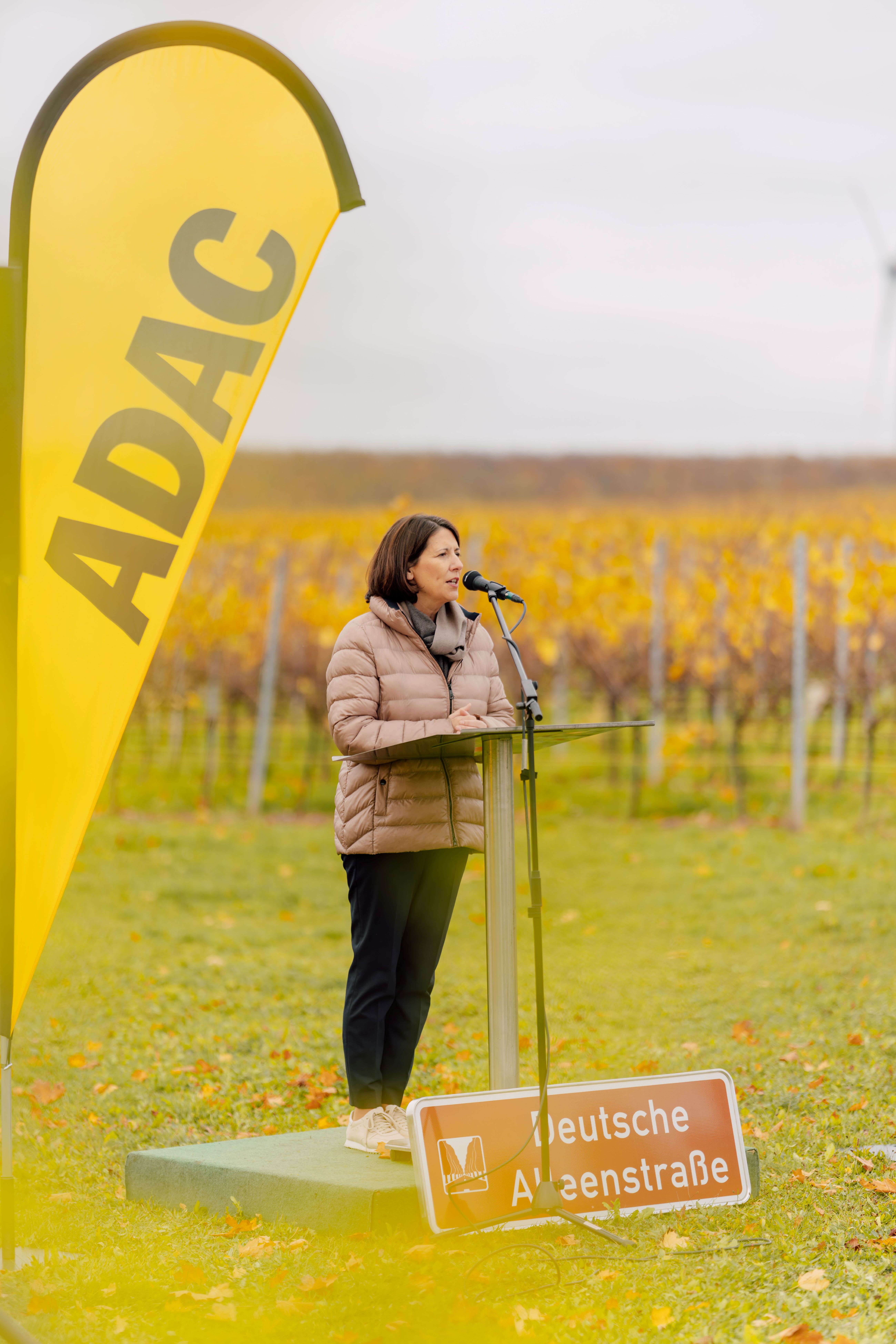 Ministerin Schmitt sagte in ihrer Ansprache: „Straßen sind nicht nur Verbindungen für unsere Wirtschaft und unseren Alltag, sondern auch prägende Elemente unserer Landschaft. Sie leisten einen wichtigen Beitrag zum Klimaschutz. Indem wir sie landschaftlich gestalten, mit Bäumen am Straßenrand bepflanzen und zu Alleen machen, schaffen wir eine Infrastruktur, die funktional und zugleich attraktiv ist und im Einklang mit der Natur steht. Das ist moderner Straßenbau, der ökologische und ästhetische Werte miteinander verbindet.“